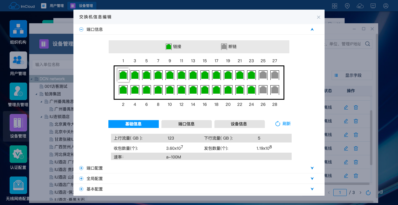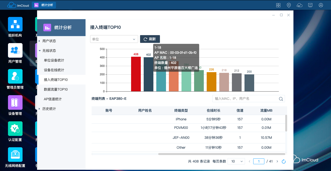 —设备统计:接入数量分析、接入流量分析、在线统计、基于单位统计